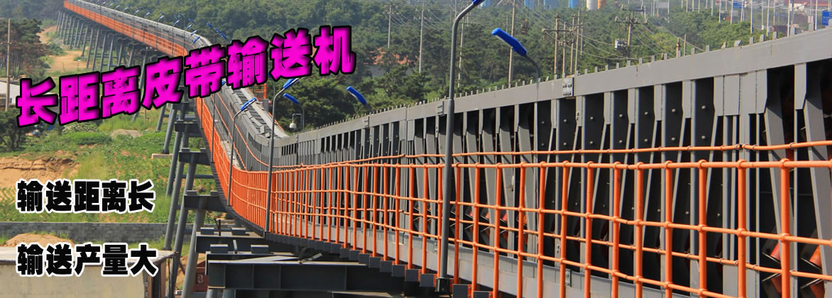 長距離皮帶輸送機其牽引構件和承載構件是一條環形膠帶,膠帶圍繞在機架兩端的傳動滾筒和改向滾筒上,從而構成一個封閉的循環回路。當傳動裝置驅動傳動滾筒回轉時,通過傳動滾筒與膠帶間的摩擦力帶動膠帶運行;被輸送的物料由導料槽添加至橡膠帶上后,隨著膠帶的移動被運送到頭部的卸料裝置處,*后物料經卸料口卸下。