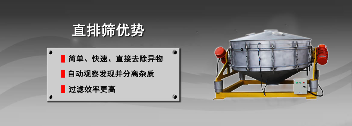 直排篩是在旋振篩的基礎上設計的一種篩分過濾篩,通過兩臺相同大小的振動電機對稱的安裝在篩體的兩側,和旋振篩一樣,電機的上下兩端都安裝有偏心重錘,電機在轉動時產生三次元運動作用于篩面從而達成對物料的篩分作業,同時出料口為直排式設計來提高排料的速度。